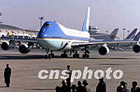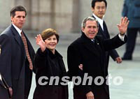 组图:美国总统布什抵达北京 2002年02月21日 11:10 ![]() 美国总统布什乘坐的“空军一号”二十一日上午降落在北京首都国际机场。中新社记者 毛建军 摄 ![]() 美国总统布什与夫人二十一日上午乘专机抵达北京首都国际机场,开始为期两天的工作访问。中新社图 毛建军 摄