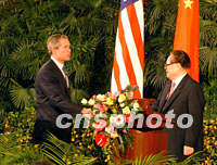 图文:中美两国元首会谈后共同会见记者回答提问 2002年02月21日 13:15 ![]() 国家主席江泽民与美国总统布什二十一日在北京共同会见中外记者,这是继APEC上海峰会以来两国元首第二次共同会见记者。中新社记者 满会乔 摄 ![]() 中国国家主席江泽民二十一日在北京迎接美国总统布什登台,出席共同会见记者的电视直播。中新社记者 贾国荣 摄