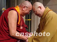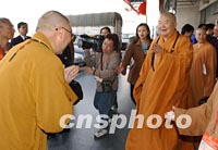 组图:法门寺佛指舍利台湾迎请团抵达西安 2002年02月21日 19:49 ![]() 由台湾佛教法师、信众组成的法门寺佛指舍利赴台湾地区瞻礼(供奉)恭迎团,二十一日下午乘机抵达西安咸阳国际机场。图为恭迎团在机场受到热烈欢迎。中新社记者 钱兴强 摄 ![]() 法门寺将举行佛指舍利赴台湾地区瞻礼(供奉)法会,来自大陆、港台以及各地的佛教信众汇聚西安。图为中国著名法师圣辉(右)和中国藏学院副院长那仓活佛(左)亲切见面。中新社记者 钱兴强 摄
