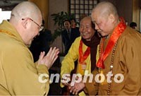图:两岸佛教人士汇聚西安 2002年02月22日 09:30 ![]() 由台湾佛教人士组成的法门寺佛指舍利赴台湾地区瞻礼(供奉)恭迎团,日前乘专机抵达西安。图为两岸佛教人士相互施礼。中新社记者 钱兴强 摄