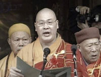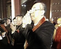组图:法门寺佛指舍利赴台瞻礼恭送法会盛况 2002年02月22日 16:07 世间仅存的释迦牟尼佛指舍利 ![]() 西安法门寺隆重举行佛指舍利恭送法会 ![]() 中国佛教协会副会长圣辉法师在恭送法会上致辞 ![]() 台湾佛光山星云法师为佛指舍利拈香 ![]() 台湾社会名流吴伯雄(右)和中国佛教协会副会长兼秘书长刀述仁为佛指舍利拈香 中新网西安2月22日消息:佛界圣物、西安法门寺佛指舍利即将赴台供奉瞻礼。今天下午3时至4时30分,西安法门寺为此举得隆重的恭送法会。 据悉,此次赴台期间,佛指舍利将巡回台北、台中、南投和高雄等地,供佛教僧俗二众和社会各界瞻仰。