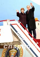图文:“空军一号”腾空 布什结束访华离京回国 2002年02月22日 16:26 ![]() 美国总统布什和夫人二十二日下午在北京登上空军一号招手告别,结束中国之行。中新社记者 贾国荣 摄