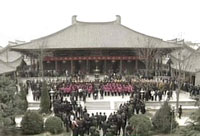 佛指舍利赴台转播开创两岸三地媒体合作新篇 2002年02月22日 16:31 ![]() 世间仅存的释迦牟尼佛指真身舍利 ![]() 陕西西安法门寺全景 ![]() 恭送法会盛况 中新网香港2月22日消息:台北讯,佛界圣物、陕西西安法门寺佛指舍利即将迎请赴台。据悉,在法门寺为此举行的盛大恭送法会仪式中,首开两岸三地新闻媒体合作现场直播的模式。 今天下午三时在法门寺举行的“佛指舍利赴台湾地区瞻礼恭送法会”,是此次盛大活动的第一场重头戏,由陕西电视台提供人力,香港凤凰卫视制作,台湾东森提供卫星频道亚太二号的方式,在两岸三地的范围内进行现场直播,所有电子媒体均采用同样的讯号发射。 据悉,这一合作构想三个月前提出,经过一个月的协调才达成。 此外,摄影机进入大雄宝殿禁地拍摄法会现场,也是此行的一个“重要突破”。但由于只允许两部摄像机进入宝殿禁地,台湾的中视、华视、民视、东森、中天、TVBS、三立、佛光卫视等众多电视媒体又因此进行了一番协调。 据悉,佛指舍利抵台后37天的七场大型活动,也将依此合作模式进行现场直播。明天上午,佛指舍利的专机从西安咸阳机场起飞,经停香港转机,一直到抵台并由高速公路进台北市区台大体育馆“安座”,整个过程中,沿途将由两岸三地十家电视媒体的SNG(现场新闻转播)车进行接力转播,以对盛况进行完整的纪录。