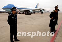 图文:中国军警在机场严密保卫美“空军一号” 2002年02月22日 18:45 ![]() 中国军警二十二日在北京机场严密保卫美国总统布什乘坐的空军一号专机。中新社记者 贾国荣 摄