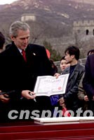 图:布什获得八达岭长城登城证书