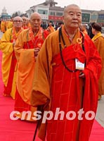 图:星云法师率台湾佛家弟子出席大法会 2002年02月22日 19:54 ![]() 法门寺佛指舍利赴台湾地区瞻礼(供奉)法会仪式二十二日在西安法门寺举行,来自台湾的恭迎团,由大陆佛教人士组成的护送团以及护法团等各界有关人士千余人汇集法门寺。图为星云法师率台湾佛家弟子出席大法会。中新社记者 钱兴强 摄