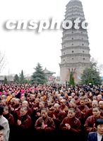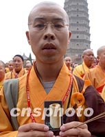 ![]() 法门寺佛指舍利赴台湾地区瞻礼(供奉)法会二十二日在西安法门寺举行,来自台湾的恭迎团,由大陆佛教人士组成的护送团以及护法团等各界有关人士千余人汇集法门寺。中新社记者 钱兴强 摄