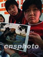 图:追忆黑熊往日的风采 2002年02月28日 20:07 ![]() 二十八日,北京动物园救助黑熊捐款中心,收到了一张在去年夏天,由一名游客所拍到的“黑黑”在水中嬉戏的照片,使得前来捐款的学生们看到后,不禁悲伤不已。几天前,该动物园五头熊被一名大学生用硫酸伤害。中新社图 杜洋 摄