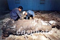 图:榕城最大石翁仲重见天日 2002年03月04日 17:36 ![]() 日前,福州东门康山一工地发现一大型墓葬遗物----石翁仲。只见它身披盔甲、双手执一利剑,经现场测算,石人高2.65米、宽90厘米、厚70厘米,重约2吨多。中新社图 陈建国 摄