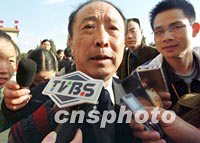 图:浙江代表谈足球黑哨 2002年03月05日 15:53 ![]() 九届全国人大五次会议五日在北京人民大会堂召开。浙江代表陈继来被记者包围,就中国足球假球、黑哨以及司法介入等问题回答记者提问。中新社记者 张宇 摄