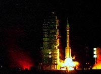 图:“神舟三号”实验飞船顺利发射升空 2002年03月26日 11:02 ![]() 二十五日晚十点十五分,中国自主研制的“神舟三号”实验飞船在酒泉卫星发射中心顺利升空。