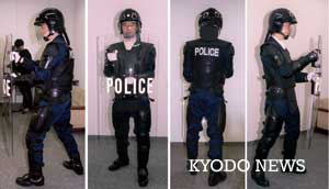 图文:日本机动队配备新武器 准备对付足球流氓 2002年03月29日 09:19 ![]() 为了在世界杯期间对付足球流氓,日本开发出一种供武装警察穿戴的新型装备 图/共同社 中新网东京3月29日消息:对付足球流氓的新武器——日本警察厅为负责世界杯足球赛警卫工作的机动队(武装警察队)开发了一种可以穿戴在身上的新型装备,并将约8,600套该装备在28日前发放到了各个警察本部。 该种新型装备包括头盔、护裆和一面透明的盾。总重10.6公斤,比此前的装备轻了1.3公斤。估计这种防护面积大而且没有死角的装备将成为镇压足球流氓的利器。