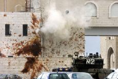 组图:以军部队突击围困阿拉法特总部过程图解 2002年03月30日 01:06 ![]() 以军破坏阿拉法特总部外墙 ![]() 以军坦克猛烈炮轰阿拉法特总部大楼 ![]() 以军士兵从外墙缺口闯入总部院内 ![]() 以军士兵闯入总部重重包围阿拉法特 ![]() 阿拉法特被困总部内危在旦夕(法新社)