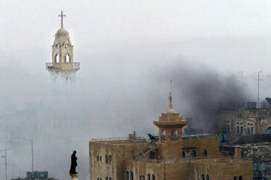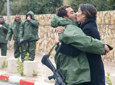 图:以色列士兵与女友分别前相拥而吻 2002年04月03日 14:17 图为色列士兵与女友相拥而吻 起火的教堂 在耶路撒冷市和西岸城市伯利恒之间地一处检查站,一名以色列士兵与女友相拥而吻。以军进入了古城伯利恒,并向教堂开火,一名神父被杀,另外六名修女受伤。法新图