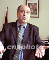 图:巴勒斯坦驻华大使谈巴以冲突 2002年04月03日 20:23 ![]() 巴勒斯坦驻华大使萨法里尼三日在北京的大使馆向采访他的媒体记者说:他前两天在与阿拉法特主席通电话时,阿拉法特表示必须斗争到底,决不屈服。在谈到近日巴以冲突的形势时说:目前,国际社会已经开始发挥作用,承担他们的责任。中新社图 李刚 摄