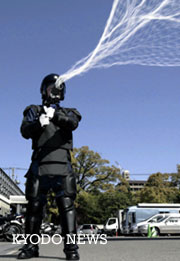 图文:日本用"网枪"把足球流氓一"网"打尽 2002年04月05日 14:21 ![]() 大分县警察总部警员身穿防护服,发射“网枪”(共同社图) 本世界杯专稿版权归中新网与TOM网站共同拥有。如需刊用,务经双方正式书面授权。 中新网北京4月5日消息:世界杯比赛主办地之一的日本大分县警察总部世界杯警备对策室4日公开了可以制服因兴奋而到处胡闹的足球流氓的“网枪”。 据共同社报道,在大约5米处发射“网枪”后,强化尼龙制成的网就向四方扩展,展开面积大约5米,可以捉住2、3人。据说“就象落网的鱼,自己绝对挣脱不出来。”“网枪”是国产的,每发射一次花费2万日元。 “网枪”计划被设置在举行比赛的大分综合体育场(大分市)以及附近车站的周围。