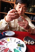 图:民间艺术家高东升手绘鼻烟壶内画 2002年04月07日 16:28 ![]() 中国民间工艺美术家高东升四月在北京家中精心手绘鼻烟壶内画《百子图》。起源于明朝末期的内画鼻烟壶融绘画、书法和料器制作为一体,深受各国收藏家青睐。中新社图 张宇 摄