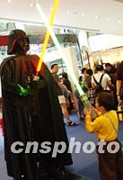 图:星球大战的黑武士吸引小童注目 2002年04月08日 15:37 ![]() 在香港太古城举行的“乐高动感缤纷SHOW”上,星球大战的黑武士人物造型,吸引小童注目。中新社图 洪少葵 摄