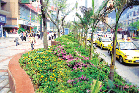 为迎接AAPP会议在重庆的召开,重庆市上上下下都积极行动起来,扮靓市容市貌。图为鲜花簇拥的沙坪坝区一角。