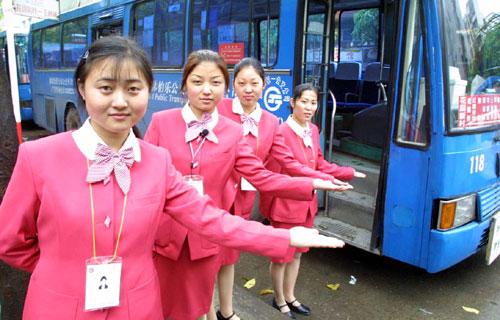 重庆公交乘务员身着AAPP会议期间迎宾礼服 2002年04月10日 11:11 ![]() 重庆晨报图 重庆市公交乘务员第一套AAPP迎宾礼服,昨天在重庆市第一公交公司118路空调大巴上靓丽登场。据介绍,这套公交迎宾礼服采用目前航空业流行的空勤服式样,以热情的红色调为统一的服务识别色。
