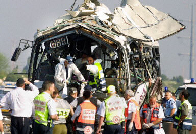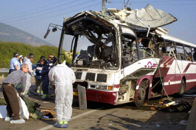 多图:海法发生汽车炸弹爆炸事件 哈马斯宣布负责 2002年04月10日 17:01 ![]() 以色列警方在检查爆炸汽车的残骸 ![]() 救援人员将遇难者尸体从汽车残骸内抬出 中新网北京4月10日消息:当地时间4月10日早(北京时间10日中午),以色列北部港口城市海法发生一起自杀爆炸事件,至少造成10人死亡,另有20人受伤。 爆炸发生在一辆公共汽车上,这辆车是从海法开往耶路撒冷的。以色列方面称此次爆炸为“恐怖袭击”,哈马斯组织已经宣布对此次爆炸事件负责。 爆炸发生前几小时,以军曾于黎明时分向约旦河西岸最大城市纳布卢斯的巴勒斯坦难民营发动进攻,现场可见烟火冲天,以军炮火、重机枪频频开火,以军直升机也发射了多枚导弹。杰宁也发生了交火。 爆炸给海法带来巨大恐慌,3月31日,海法一家餐厅就曾发生一起自杀性爆炸事件,造成16人丧生。昨晚,以军士兵在约旦河西岸城市杰宁的难民营遭到伏击,13人丧生,9人受伤。这是近18个月来以色列方面发生的最严重单起伤亡事件。以色列总理沙龙随后称,以军在约旦河西岸的军事行动将继续,直到将巴勒斯坦武装分子彻底铲除。(春风)