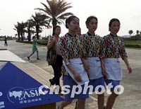 图:金海岸酒店女服务员成博鳌论坛亮点 2002年04月10日 19:46 ![]() 海南博鳌亚洲论坛开幕在即,论坛主会场金海岸酒店的女服务员身着特色服饰,成为博鳌的一道风景线。中新社记者 满会乔 摄
