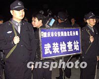 组图:重庆警方"飓风行动"确保"AAPP"安全 2002年04月11日 17:38 ![]() 重庆警方十一日凌晨开展“飓风七号”行动,出动两万警力对涉及“AAPP”会议的场所进行“净化”清理。图为重庆警方在交通要道设置的武装检查站。中新社图 邹辉 摄