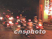 ![]() 重庆警方十一日凌晨开展“飓风七号”行动,出动两万警力对涉及“AAPP”会议的场所进行“净化”清理,以确保会议安全。图为摩托车警察出发参加“飓风七号”行动。中新社图 邹辉 摄