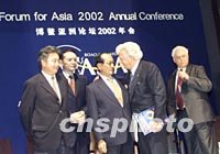 图:博鳌亚洲论坛理事会当选成员与媒体见面 2002年04月11日 19:34 ![]() 菲律宾前总统拉莫斯(左三)、澳大利亚前总理霍克(左四)等博鳌亚洲论坛理事会当选成员十一日在博鳌出席与媒体见面会。中新社记者 满会乔 摄