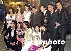 ![]() 香港英皇娱乐11日举行三周年庆典活动巡礼,英皇娱乐老板杨受成(后排右三)在庆典上与旗下歌星聚首一堂。中新社图 邓庆乐 摄