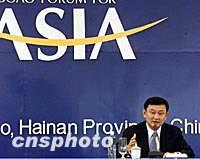 ![]() 博鳌亚洲论坛首届年会十二上午在海南博鳌开幕,泰国总理他信在开幕式上发表主旨演讲。中新社记者 满会乔 摄