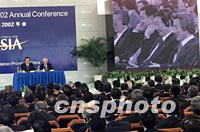 ![]() 博鳌亚洲论坛首届年会十二上午在海南博鳌开幕,日本首相小泉纯一郎在开幕式上发表主旨演讲。中新社记者 满会乔 摄