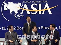 图:中国经济高官在博鳌亚洲论坛上谈入世 2002年04月12日 19:37 ![]() 博鳌亚洲论坛首届年会十二下午举行议题讨论会,中国高官人民银行行长戴相龙、信息产业部长吴基传、国家税务总局局长金人庆、中国保险监督管理委员会主席冯晓增(由右至左)分别就各自相关行业与中国入世关系发表演讲。中新社记者 满会乔 摄