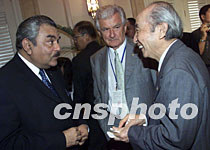 图:参会前政要出席博鳌论坛闭幕新闻发布会 2002年04月14日 16:18 ![]() 博鳌亚洲论坛首届年会十三日在海南闭幕,澳大利亚前总理霍克(中)等前政要等出席年会闭幕新闻发布会。作者:满会乔
