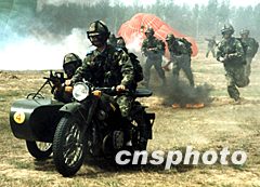 图:空降兵特种部队进行侦打综合演练 2002年04月15日 10:44 ![]() 解放军空军空降兵特种分队四月进行侦察打击一体化综合演练,着陆官兵快速向目标冲击。中新社记者 王丽南 摄