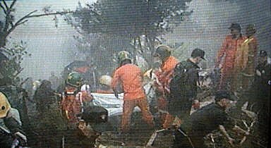图:国航客机在韩国坠毁 韩国方面抢救生还者 2002年04月15日 16:03 ![]() 中国国际航空公司一架波音七六七型飞机十五日从北京起飞于韩国坠毁。图为韩国救援人员在坠机现场进行抢救工作。法新图