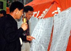 韩国人在事发地附近阅读失事飞机的乘客名单。法新社图