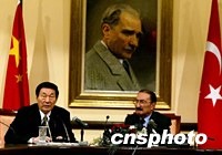朱镕基:共同打击“东突”符合中土两国根本利益 2002年04月16日 21:05 ![]() 朱镕基总理4月16日在安卡拉与土耳其总理埃杰维特会谈后,就中土共同打击“东突”等问题共同会见记者。作者:岳尧