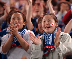 ![]() 日本球迷为国家队助威 图/共同社