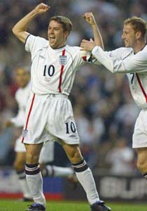 新队长欧文光芒四射 率英格兰4球痛破铁桶阵 2002年04月18日 08:56 ![]() 新队长欧文光芒四射 中新网北京4月18日消息:在今天凌晨结束的一场热身赛中,英格兰队在利物浦安菲尔德球场以4比0狂胜来访的巴拉圭国家队。首次担任队长的小将欧文闪亮登场,只用了4分钟就敲开了对方的大门,墨菲与瓦塞尔也锦上添花,而巴拉圭队后卫阿亚拉的一个乌龙球则彻底丧送了老马尔蒂尼的球队。 由于队长贝克汉姆因伤缺席昨天的比赛,因此22岁的欧文成为场上队长,他也是英格兰历史上的第二年轻的队长。比赛中,顶替贝克汉姆担任右前卫的中场大将杰拉德发挥出色,他所领导的中场在上半场完全控制了场上局面。比赛开始后4分钟,与欧文搭档的前锋瓦塞尔赢得一个任意球,杰拉德右路将球开出,欧文在门前高高跃起,将自己好友的传球顶进了对方替补奇拉维特出场的塔沃雷利的把守的大门。 杰拉德继续光芒四射,他和欧文的在20分钟后的一次配合险些将比分扩大为2比0。当时他长传欧文,欧文胸部停下杰拉德的长传,在门前16米处半凌空射门高出。 下半时,埃里克森一口气换上乔-科尔,哈格里夫斯,辛克莱尔,福勒,迈尔斯和墨菲。第47分钟,才华横溢的中场小将乔-科尔在左路策动一次进攻,将球传给福勒,后者将球回敲给小将墨菲,墨菲低射将比分改写为2比0。 乔-科尔随后又获得一次机会,他险些单刀赴会再下一城。不过瓦塞尔在7分钟后替他出了口气,他的射门打在防守队员的腿上折射后入网,这也是瓦塞尔三场国家队比赛中的第二个入球。此后,得势不饶人的英格兰队继续在对方门前狂轰滥炸,第78分钟,阿亚拉抢在谢林汉姆的逼抢下忙中出错,自摆乌龙,将比分扩大为4-0。 赛后,新队长欧文非常兴奋,他表示球队已经从1-2输给意大利队的阴影中摆脱出来。“我们上一场比赛很不如意,不过今天晚上我们向世人展现了自己的实力。这是一场伟大的比赛,将大大增强我们的自信心。” 这也是主教练埃里克森的第13场国家队比赛,赛后他特别表扬了杰拉德,“斯蒂文是世界上最优秀的中场球星之一,我们知道他能够控制中场,并能在其他领域也做的很好。” 英格兰(4-4-2):西曼/加里-内维尔(卡拉格,第69分钟),基翁(迈尔斯,第46分钟),索斯盖特(谢林汉姆,第69分钟),布里吉(菲尔-内维尔,第69分钟)/巴特(乔-科尔,第46分钟),杰拉德(辛克莱,第46分钟),斯科尔斯(福勒,第46分钟),代尔(墨菲,第46分钟)/欧文(哈格里夫斯,第46分钟),瓦塞尔(兰帕德,第69分钟)。 巴拉圭首发阵容(4-4-2):塔瓦雷利/阿尔斯,阿亚拉,加马拉,卡尼萨/加维兰,斯特鲁维,博内特,帕雷德斯/圣-克鲁斯,卡多索。
