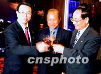 图:包叙定、王云龙与拉那烈亲王为和平干杯 2002年04月18日 14:44 ![]() 重庆市人大常委会主任王云龙、市长包叙定昨晚在游船上设宴举行招待会,欢迎前来参加“亚洲议会和平协会(AAPP)第三届年会”的亚洲各国来宾。图为重庆市人大常委会主任王云龙、市长包叙定与AAPP前任主席、柬埔寨拉那烈亲王为和平干杯。中新社图 邹辉 摄