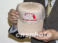 图:旅美华人社团制作纪念帽欢迎胡锦涛访美 2002年04月23日 10:34 ![]() 中国国家副主席访美在即,美国侨界热烈期待。其中美国江浙工商总会特别设计制作了一顶纪念帽准备在胡锦涛访问纽约的时候送给他。这是一顶米色的帽子,用咔叽布作成,帽子的中央有一个椭圆型的标志——两只手握在一起,两只手的袖口分别是中国国旗和美国国旗,并用中英文书写“我们永远是朋友”。旅美华人社团借此祝愿胡锦涛访美成功,并表达美国华人对中美友好的祝福。中新社记者 赵海燕 摄