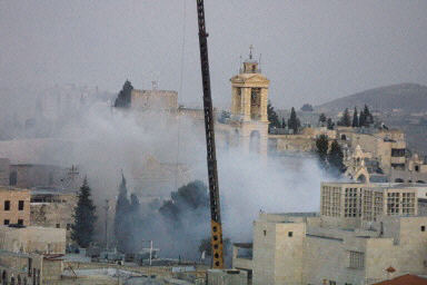 以巴官员将会谈 讨论伯利恒主诞堂对峙危机(图) 2002年04月23日 16:23 浓烟巨浪中的伯利恒主诞堂。(法新图) 中新网北京4月23日消息:以色列电台报道说,以巴官员今天将举行会谈,试图解决伯利恒市主诞堂长达三周的对峙局面。 德新社援引报道说,这次会谈原定上周举行,但最后被巴勒斯坦领导人阿拉法特取消。 另据路透社报道,伯利恒市长已经证实,以巴官员今日将会首次会晤,商讨解决这个问题。 预料会议会在当地时间上午11:00举行。伯利恒市长称这是初步会谈,希望能够取得突破。以色列军方亦证实正在为会议作准备。