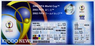 蓝色为基调 世界杯门票设计首次在韩国公开 2002年04月26日 16:41 ![]() 中新网东京4月26日消息:世界杯韩国组委会(KOWOC)和国际足联(FIFA)的门票代理销售商拜伦公司25日在汉城开设的门票中心内首次公开了世界杯门票设计。 据“共同社”报道,设计以兰色为基调,票面上绘制有世界杯会徽等,为了防止转让和倒卖上面还印有购买者的姓名。拜伦公司还公开了“灵通卡(SMART CARD)”装置,购买指定赛场、球队等多场比赛门票(VST、TST)的观众可以使用“灵通卡(SMART CARD)”终端领取门票。 在门票仍有剩余的韩国,观众5月中旬后可以直接在门票中心购买门票。同样的门票中心还开设在赛场,终端也连接在机场以及饭店等。25日当天还举行了使用发放终端发放模拟门票的仪式。