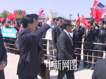 图文:胡锦涛抵达华盛顿 美国助理国务卿等迎接 2002年05月01日 09:38 ![]() 当地时间4月30日上午11时,胡锦涛副主席乘专机抵达美国首都华盛顿,继续其对美国的正式访问。图为胡锦涛副主席携夫人步下舷梯。中新社 徐德金摄 ![]() 胡锦涛面含笑容迎向欢迎的人群,频频挥手致意。中新社 徐德金摄 ![]() 胡锦涛在机场受到美方官员、中国驻美使馆工作人员和华人华侨、留学生代表的热烈欢迎。中新社 徐德金摄 中新网华盛顿四月三十日电(记者徐德金)中国国家副主席胡锦涛和夫人今天上午十一时许乘专机抵达美国首都华盛顿。在安德鲁空军机场,胡副主席受到美方官员、中国驻美使馆工作人员和华人华侨、留学生代表的热烈欢迎。 到机场迎接胡锦涛副主席的美方官员有助理国务卿凯利、安德鲁空军基地司令等。美国驻华大使雷德陪同胡副主席一行从纽约同机抵达。 阳光朗照,春风和煦,胡锦涛副主席和夫人步下舷梯、踏上红地毯。中国驻美使馆工作人员向胡副主席和夫人敬献了鲜花。在热烈的欢迎声中,胡副主席面含笑容迎向欢迎的人群,频频挥手致意。 胡锦涛副主席是应美国副总统切尼的邀请,于四月二十七日抵达夏威夷开始对美国进行访问的。 据悉,在华盛顿访问期间,胡锦涛副主席将与布什总统、切尼副总统、鲍威尔国务卿以及国会议员等进行会见、会谈;还将出席美中关系全国委员会等八个团体举办的晚餐演讲;会见华人华侨、留学生和中资机构的代表。