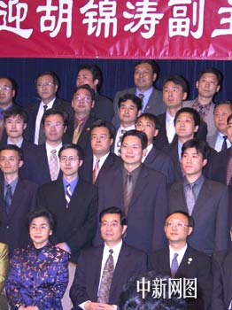 组图:胡锦涛接见驻美使馆人员和旅美学人代表 2002年05月01日 12:57 ![]() 美国当地时间四月三十日晚,正在华盛顿访问的胡锦涛副主席在他下榻的饭店接见华人华侨、留学生代表、中国驻美使馆工作人员和中资机构的代表。图为胡副主席与华盛顿地区的旅美学人合影。中新社 徐德金/摄 ![]() 图为胡副主席中国驻美使馆工作人员合影。中新社 徐德金/摄