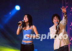央视《同一首歌》——“今宵欢乐”走进深圳 2002年05月01日 21:21 ![]() 四月三十日晚,中央电视台《同一首歌》——“今宵欢乐”大型演唱会在深圳欢乐谷水上梦幻舞台举行,来自两岸三地的明星联袂演出。图为台湾歌星邰正宵与大陆歌星孙悦一起演唱《好人好梦》。作者: 陈文