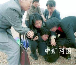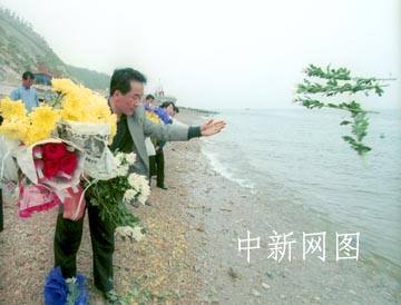 组图:5月13日大连空难遇难者家属举行海祭 2002年05月13日 20:28 ![]() ![]() 图为张丰仪的母亲姜晓云悲痛难抑,晕倒在海边。 ![]() 张廷家生前是东北电业管理局第二工程公司的工程师,图为他的同事在大连海滨撒花祭奠 大连海事大学附属小学五年级学生张丰仪和爸爸张廷家均在“五·七”空难中不幸罹难。五月十三日,张丰仪的母亲姜晓云等亲属到飞机失事海域为他们举行海祭。中新社图 王丽南 摄