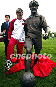 组图:中国足球队员为各自的铜像揭幕 2002年05月15日 16:20 ![]() 沈阳绿岛宾馆日前为中国足球队竖立铜质雕塑,米卢兴致勃勃为自己的铜像揭幕。中新社图 胡金喜 摄