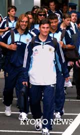 图文:阿根廷国家队抵达日本 开始备战世界杯 2002年05月16日 14:28 ![]() 萨内蒂(前)、巴蒂斯图塔(左)等阿根廷国脚到达日本参加世界杯(共同社16日上午摄于成田机场)